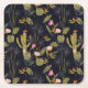 Dark Summer Night Cactus Pattern Square Paper Coaster