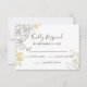 This design features peonies and foliage in a modern, minimal line drawing style with accents of gold. The matching font features classic serifs and a handwritten cursive typography. "Kindly Respond" and the respond by date are prominent on the front. It also has "joyfully accepts", "number attending" and "regretfully declines." The back also has gold foliage accents with plenty of room to add additional text.