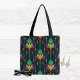 Dark Teal and Gold Art Deco Floral Ornament Tote Bag