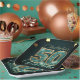 Celebrate a major milestone in style with these elegant 50th birthday party paper plates. Featuring a luxurious dark teal and gold mosaic number centerpiece, glowing bokeh accents, and sophisticated typography, these plates will instantly elevate your birthday tableware. Perfect for both formal dinners and casual milestone celebrations, this rich emerald and gold design adds a touch of modern glamour to the party decor. Easily update the template with the guest of honor's name and event date for a memorable celebration.