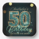 Dark Teal and Gold Mosaic 50th Birthday Party Paper Plate