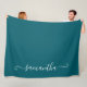 Dark Teal and White Cute Signature Name Fleece Blanket