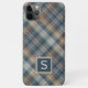 Contemporary dark teal blue, tan, brown, beige, taupe, and ivory cream white tartan plaid pattern. With room to customise or personalise with a monogram or initial of your choice. Beautiful, modern, and cool cover for the trend-savvy and art-loving hip trendsetter, artsy motif lover who wants to protect their phone from dust and dirt, wear and tear. This design is available in Apple iPhone 6, 7, and 8 Plus, 10 or X, XR, XS, 11, 12, 13 Mini, 14, 15 Plus, and Pro Max cellphone cases. Show off your style, look fashionable trendy, and feel stylish with a unique design on a mobile device accessory of your choice.