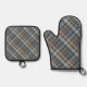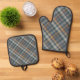 Dark Teal Blue Beige Tan Plaid Gingham Pattern Oven Mitt & Pot Holder Set