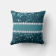 Dark Teal Blue Faux Glitter and Diamonds Cushion