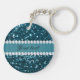 Dark Teal Blue Faux Glitter and Diamonds Key Ring