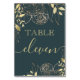 Dark Teal Blue & Gold Peony Modern Floral Wedding Table Number