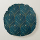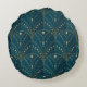 Dark teal floral damask pattern round cushion