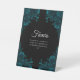 Chic & Stylish-Wedding Favours Sign. The Teal Roses Wedding Theme is a blend of modern and traditional floral accents with teal roses contrast and accent the black background wonderfully. These elegant florals are perfect for all your wedding décor and stationery needs. This beautiful design is most suitable for weddings where you have chosen to incorporate a bit of turquoise, and dark blue-green.