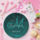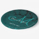 Dark Teal White Turquoise Elegant Wedding Monogram Paper Plate