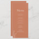 This dark terracotta wedding menu features ivory botanical accents and elegant modern typography. The warm clay background offers a rich, earthy atmosphere perfect for boho, rustic, or modern receptions. Designed to match the terracotta monochrome collection, this menu can be customized with your wedding dinner selections.