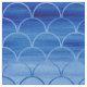 Rows of interlocking scales form a geometric pattern that ranges from dark to light blue. Their outlines, in contrast, range from light to dark blue. The Prussian blue watercolor paint strokes visible within the fan shapes show variations in the colour.