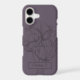 This phone case features a line art drawing of tulips in dark on a dusty plum background with and a personalized name. Original art from Dogwood & Thistle.