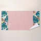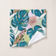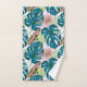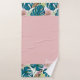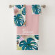 Dark turquoise monstera, delicate peach and yellow bath towel set
