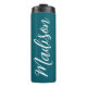 Dark Turquoise White Handwritten Script Custom Thermal Tumbler
