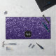 Dark ultra violet purple glitter sparkles Monogram Desk Mat