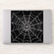 A spider's web forming in a dark black void.