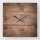Dark Wood Planks Square Wall Clock