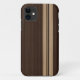 Faux-wood iPhone case featuring dark wood background with light wood stripes reminiscent of an old-school longboard!