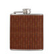 The flask itself is fine. It’s a cheap flask, obviously bought in bulk, however am prepared to overlook that. Given that it is a personalized item, I would have liked to have seen gift boxing instead of the generic packaging. Terrible printing, and/or quality. It’s a cheap, tacky vinyl. It is not cut straight and is also applied in a way that it is overhanging the bottom, causing the glue to catch on items and it will eventually roll and tear, damaging the wrap.