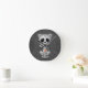 This adorable grey kitten design is decorated with swirls and dot patterns. Small flower pedals circle the pure black eyes in the tradition of the Day of the Dead sugar skulls. The cat is sitting down, looking forward with its tail waving in the background. The over sized head sits on a tiny body which creates a playful, cartoon like appearance. A five point star sits in the middle of the kitten’s forehead while a bright red and yellow heart appears in the centre of the chest. This cute little cat is a fun and stylish design inspired by the beautiful patterns of Day of the Dead sugar skulls.