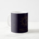 Boho style sun, moon and stars mug, dark purple and goldel yellow colours.