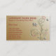 Beautiful business card in gold shades with floral swirls and frolicking butterflies.