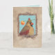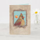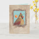 Female cardinal framed by nestings. Darling is wearing a hat made from a Royal Ann cherry.