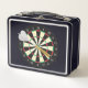 A Black Custom Metal Lunch Box Of A Dart and Dart Board For The Dart Game Enthusiast