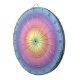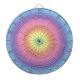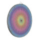 Concentric circles of rainbow colours. From Centre - green, yellow, orange, red, pink, purple, blue.