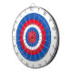 Rings in two sets of White, Blue, and red grow concentrically smaller in thickness as the approach the centre.