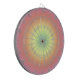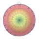Concentric circles of rainbow colours. From centre - green, yellow, orange, red, pink.