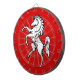Crafted with meticulous attention to detail, this dartboard is more than just a game accessory—it’s a celebration of Kent’s rich heritage and regional pride. The vibrant design prominently showcases the iconic white horse on a bold red background, turning every throw into a tribute to one of England’s most historic counties.