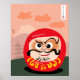 Illustration of a daruma doll with Mount Fuji in the background. Celebrating Japan.