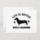 daschund dog design postcard
