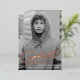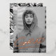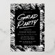 Modern graduation party invitation featuring the graduate's vertical photo with "Grad" in real rose gold foil handwritten lettering with a dash below. Personalise the trendy photo graduation party invite by adding the graduate's name and school name. The rose gold foil graduation party invitation reverses to display your party details with a black and white dashed brushstroke background.