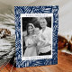 Modern holiday card featuring your photo framed in white with a navy and silver foil dashed geometric pattern. Personalise the foil holiday card with your custom greeting, family name, and year in bold navy lettering. The unique Christmas card reverses to display your custom message in white lettering with a navy background.