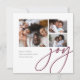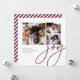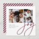 Share cheer with these colourful and modern holiday cards featuring 3 of your favourite photos (one square and two small horizontal or landscape orientated). "Joy" appears in casual, modern hand lettered script in a beautiful jewel toned burgundy plum shade. Personalise with your custom holiday greeting, family name, and the year along the bottom. An eyecatching choice in a unique rounded square shape for your Christmas 2021 greetings.