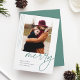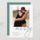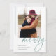 A modern and elegant holiday card featuring a vertical or portrait-orientated photo accented with thin vertical stripes. "Merry" appears beneath in casual hand lettered script typography. Personalise with your custom holiday greeting, family name, and the year. A chic and modern minialist choice for your Christmas 2021 cards.