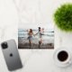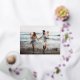 Perfect for those living in tropical climes, or for sharing a faulty vacation photo, or optional holiday photo card features "Dashing Through the Sand" as a gold foil text overlay adorned with starfish illustrations. Personalise with your names and custom greeting (show with "warmest wishes") along the bottom. Cards reverse to a pattern of white starfish on sand beige.