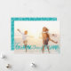 Perfect for those living in tropical climes, or for sharing a favorite beach vacation photo, our coastal chic holiday photo card features "Dashing Through the Sand" as a vibrant teal text overlay adorned with starfish illustrations. Personalize with your names and custom greeting (shown with "happy holidays") along the bottom. Cards reverse to a pattern of white starfish on coastal turquoise.