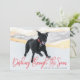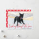 Show off your family pet with our Dashing Through The Snow holiday pet card. The holiday pet card displays your favourite photo with the words "Dashing Through The Snow" in a red, hand-lettered script font with your custom text below. The reverse side features a red and white paw print design.