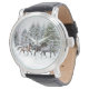 Three horses, a grey, a bay and a paint horse, trot and canter across a snowy landscape in this original digital artwork created in DAZ 3D by artist Jayne Wilson. This is an alternative style watch that does not have the hours marked on the face.