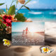 Dashing thru the sand in brush style script in editable colours; backer colour is also optional.