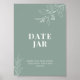 Date Jar sign, chraacterised by boho style with floral artwork and sage green colours. Printed on high-quality cardstock, they will surely impress your guests and set the tone for your special day.