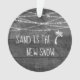 For the family that celebrates their holidays in the tropics, this pillow displays a cute palm tree icon with the sentiment fun "Sand is the New Snow." It features white chalk-styled typography set on a monochrome grey rustic wood background with twinkling string lights. The reverse side says "First Christmas in Florida" and the year -- both of which you can change or delete. It's the perfect finishing touch to your first Christmas in the Tropics! #StringLights #Rustic #Holidays