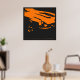 Original one-colour drawing of a Datsun 240Z Detail in orange on a charcoal-black background.