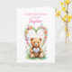 Send birthday wishes to your daughter on her fifth birthday in the cutest way possible with this lovely card. A teddy bear, in front of a bunch of colourful flowers, presents a heart showcasing the age of 5. Make their birthday unforgettable with this charming card. A 5th birthday card for a daughter.