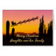A Christmas card for your daughter and her family showing Santa flying over the desert. Lots of tall cactus are seen in silhouette. Wish a merry Christmas from the desert with a lovely sunset coloured card.