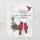 A beautiful red cardinal sitting on a pine bough wishing your daughter and her partner a very Merry Christmas